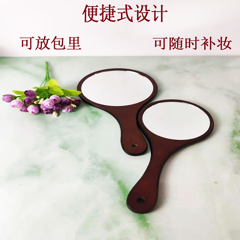 Hand-held makeup mirror portable makeup mirror handle mirror beauty salon creative retro dressing double-sided mirror wooden small mirror