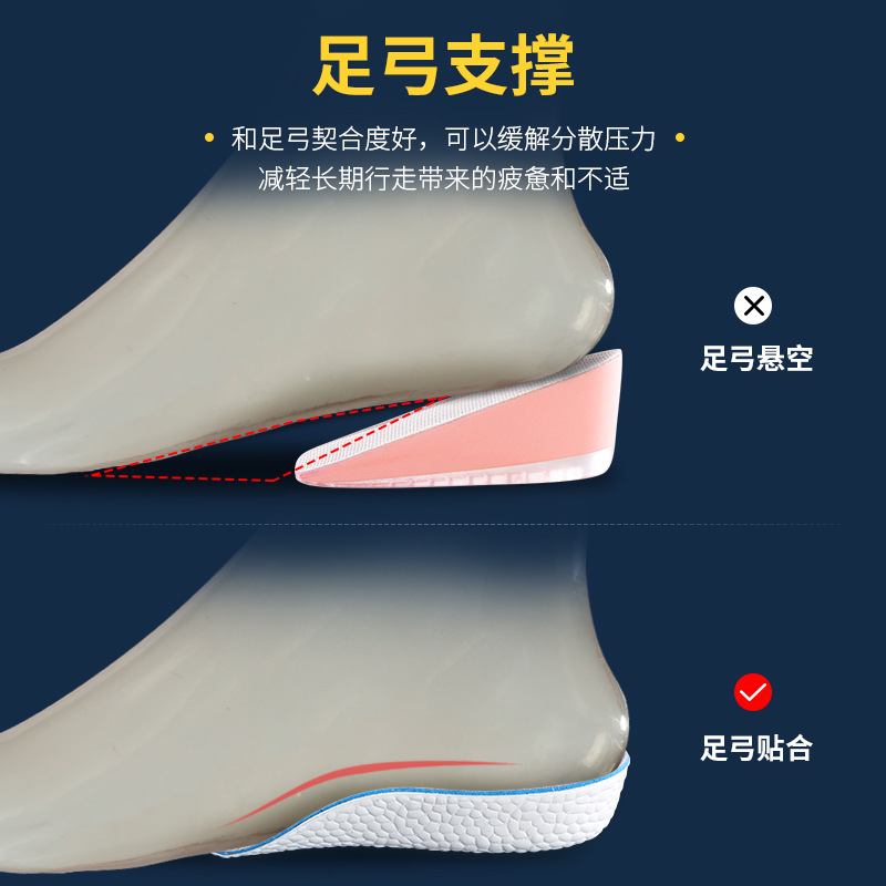 Boost invisible inner heightening insole women's soft bottom comfortable heightening pad silicone elastic shock-absorbing men's heel half pad