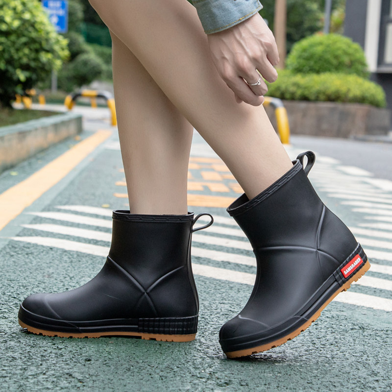 Rain boots women's fashion outer wear adult waterproof non-slip rubber shoes women's thick velvet warm water shoes short rain boots