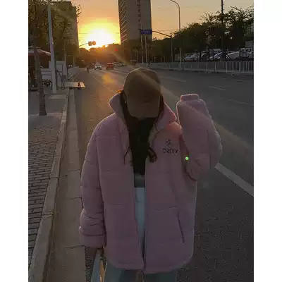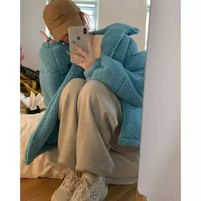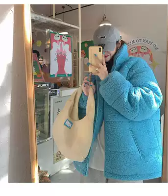 White water female lamb wool stand-up collar jacket female spring and autumn lazy wind warm loose outer wear thickened padded top