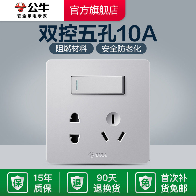 Bull official website flagship wall switch socket five-hole with switch 10A socket one open five-hole G12 silver