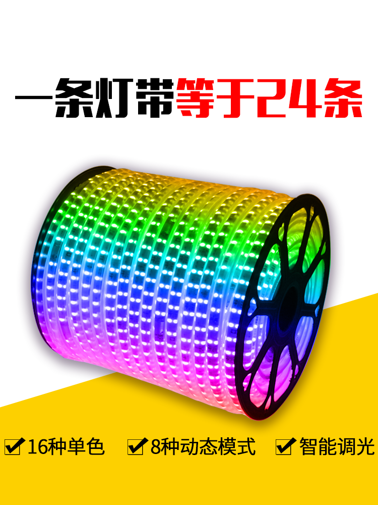 Light strip led three-color discoloration outdoor waterproof 220v living room ceiling super bright smart rgb dazzling bright long soft light strip