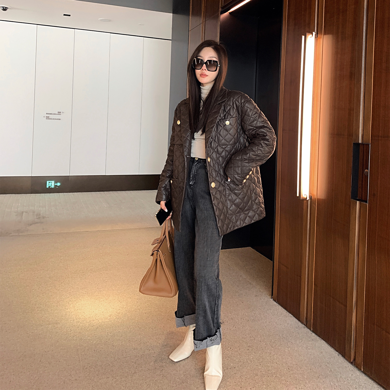 Pay Wise Nrhombus Down Sheep Leather Leather Leather Light Thin Down Clothing Woman Mid long winter season jacket 2021