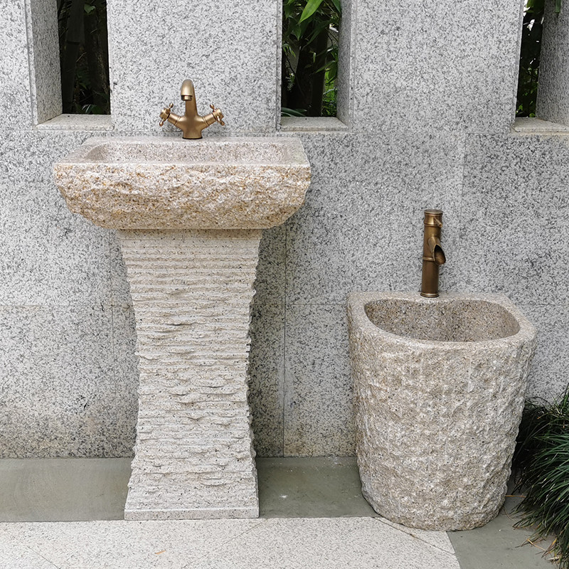 Stone washbasin Chinese-style courtyard column basin one outdoor floor-to-ceiling washbasin light luxury stone pool outdoor