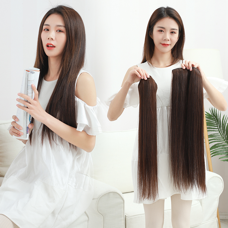 Real hair Fat sheet No marks Three-piece hairpiece Women on their own pick up straight hair slices All true people with a piece of style patch-Taobao