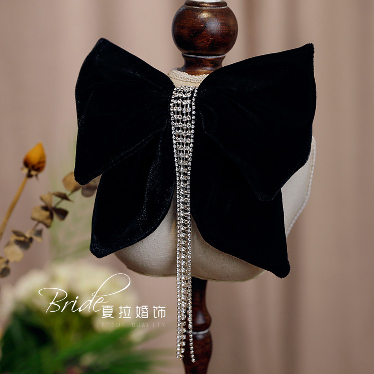 2022 New Big Bow Hairpin Net Red French Hairpin Retro Diamond Velvet Bride Toast Clothing Accessories