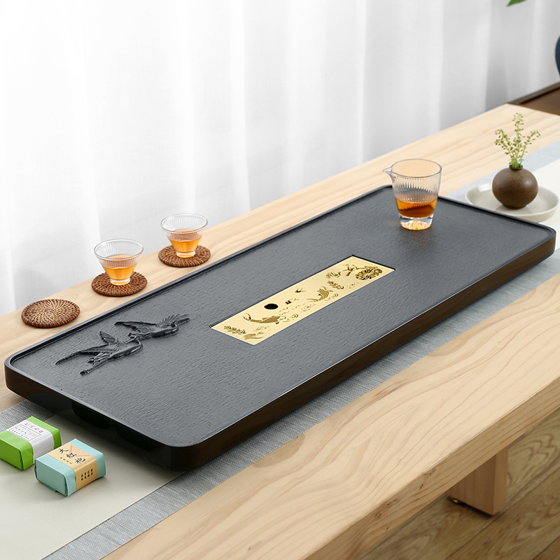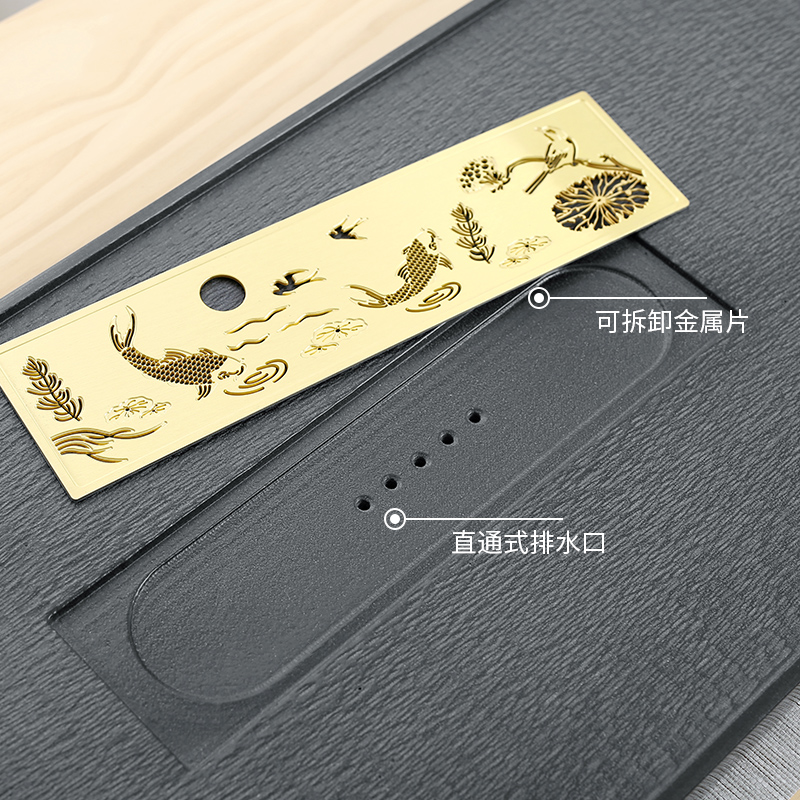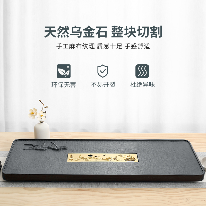 Natural Whole Block Engraving U Gold Stone Tea Tray Home Chinese Style Tea Desk Handmade Size Stone Tea Sea Nursery Tray Tea Set
