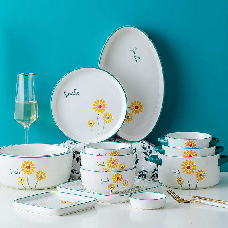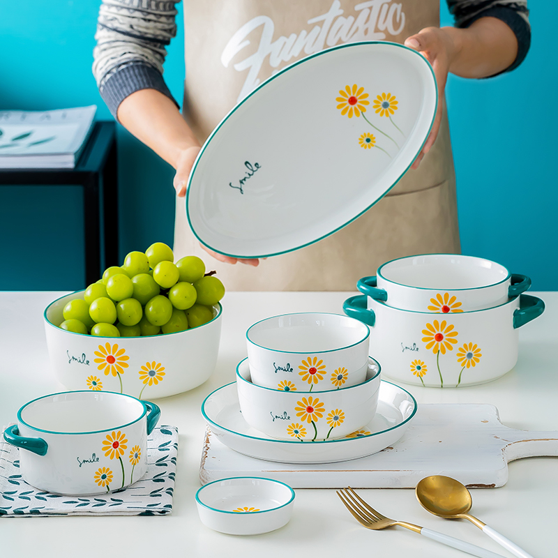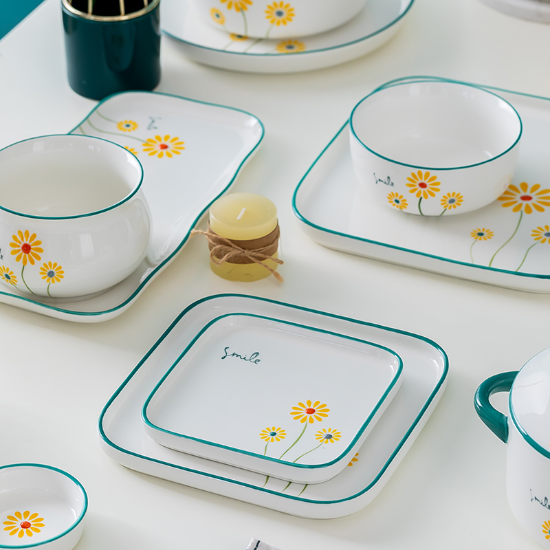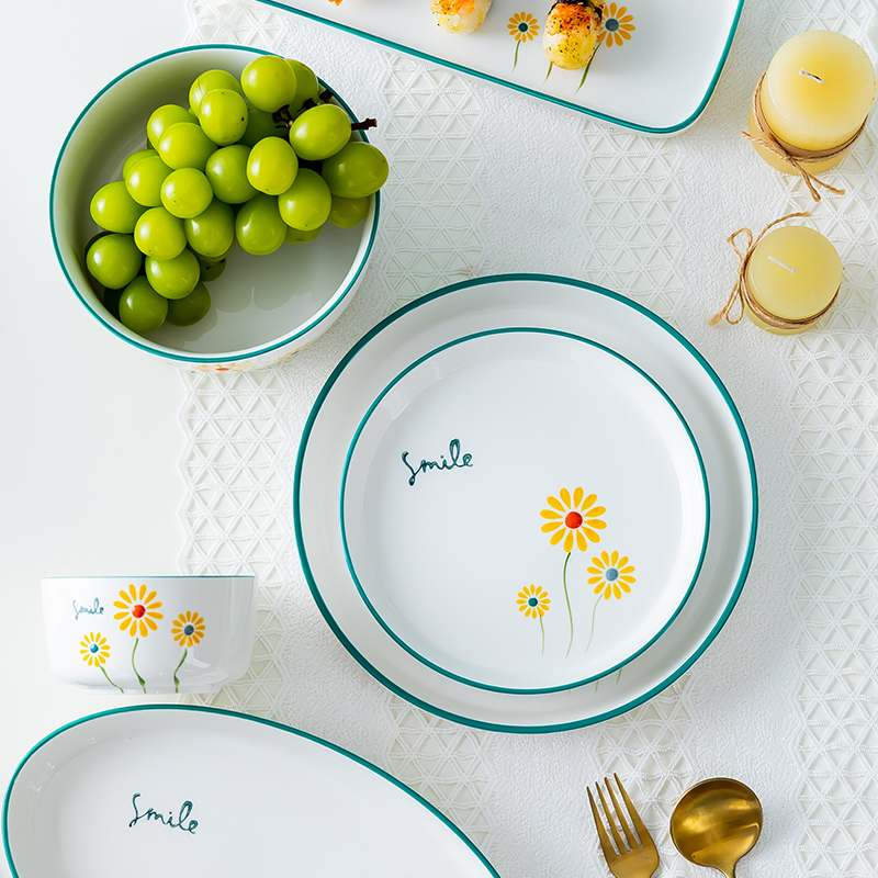 Daisy Japanese tableware bowl set household soup bowl rice bowl plate fish plate ceramic bowl plate combination