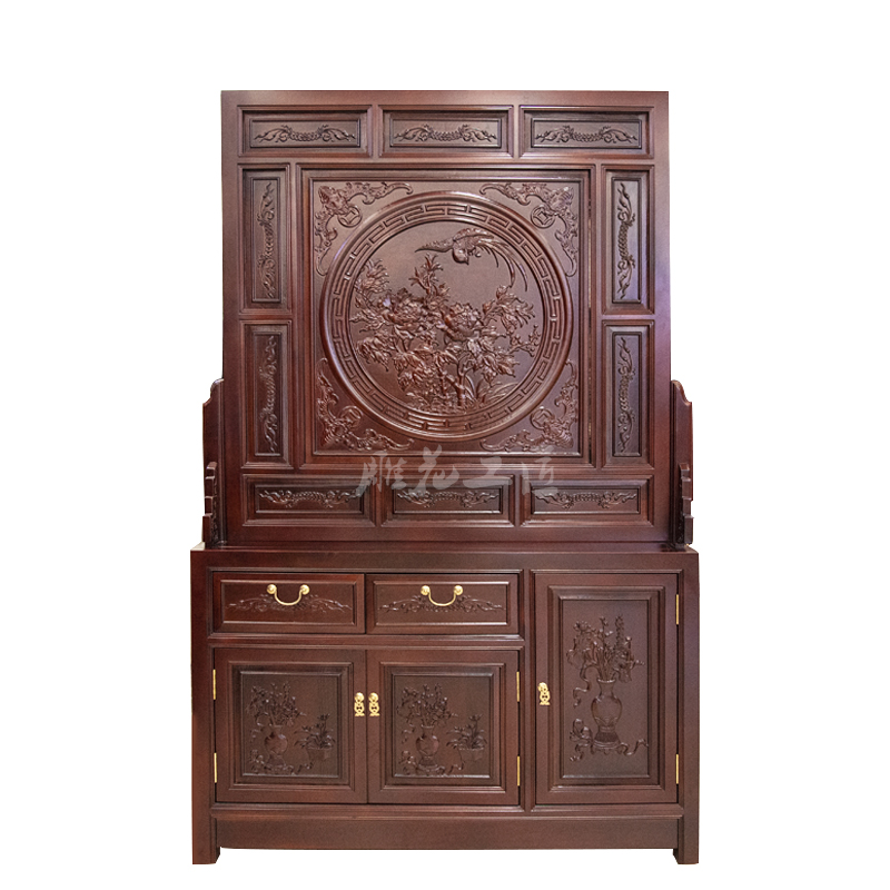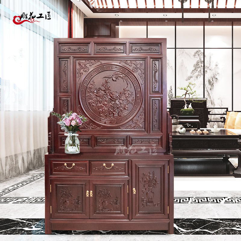 Dongyang wood carving porch cabinet solid wood retro screen partition living room entrance double-sided carved blessing to block household seat screen