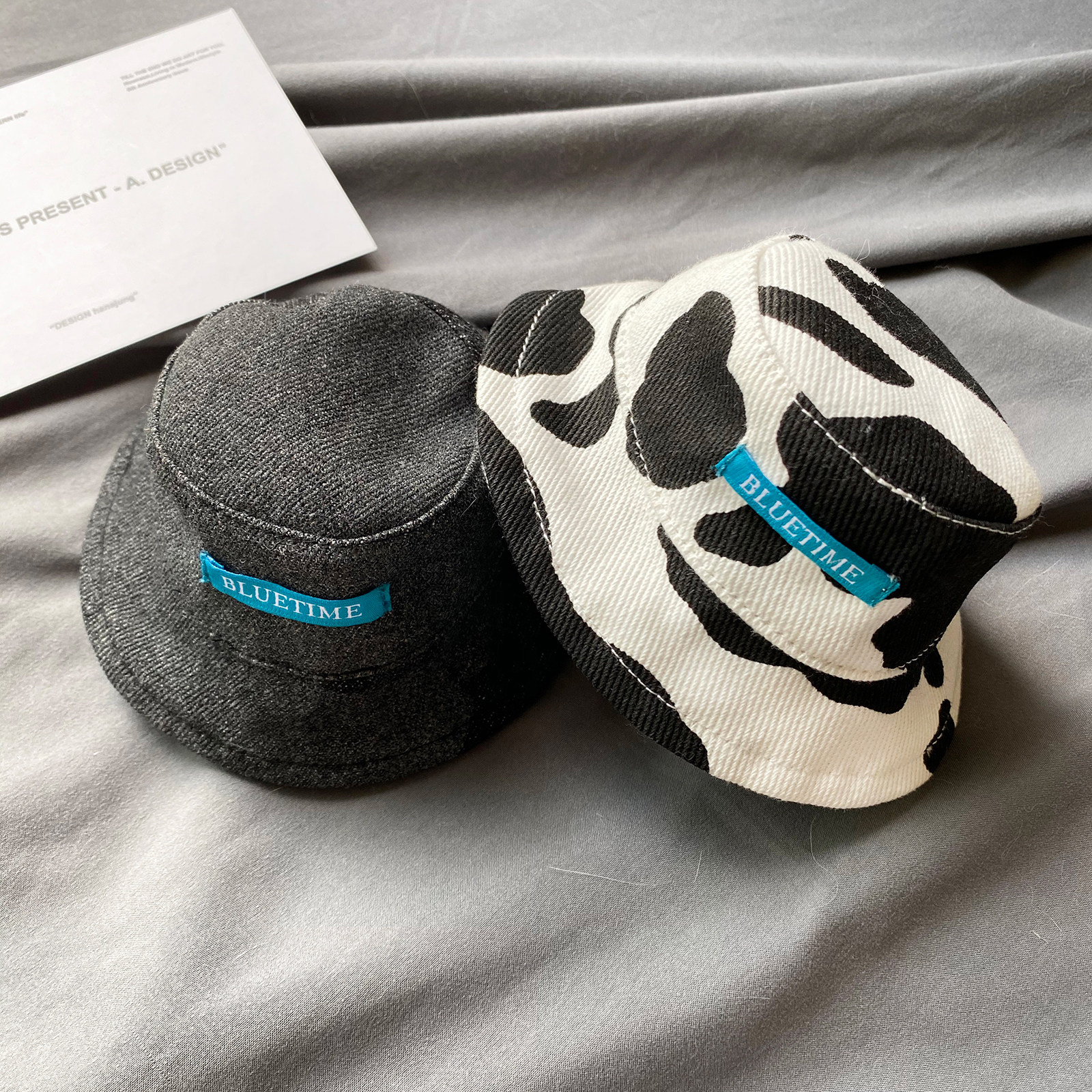 Cow Pattern Bucket Hat Black Grey Bucket Hat