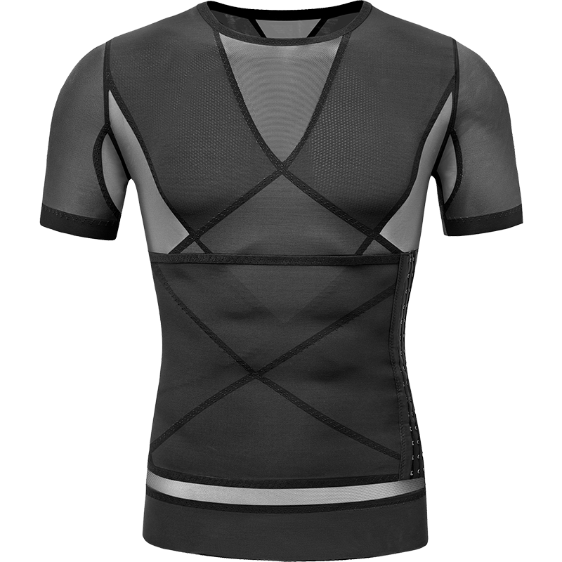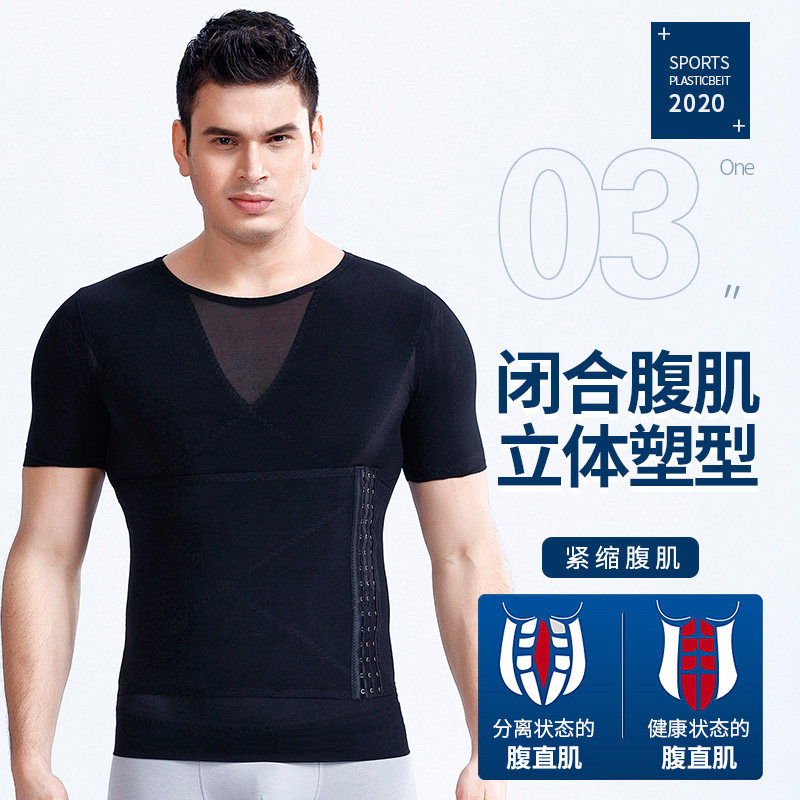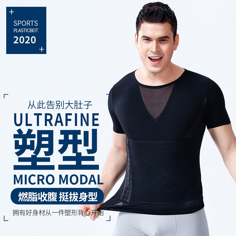 Men's belly artifacts fitness tie-strapped beam shaped waist and thin stealth short sleeve shape