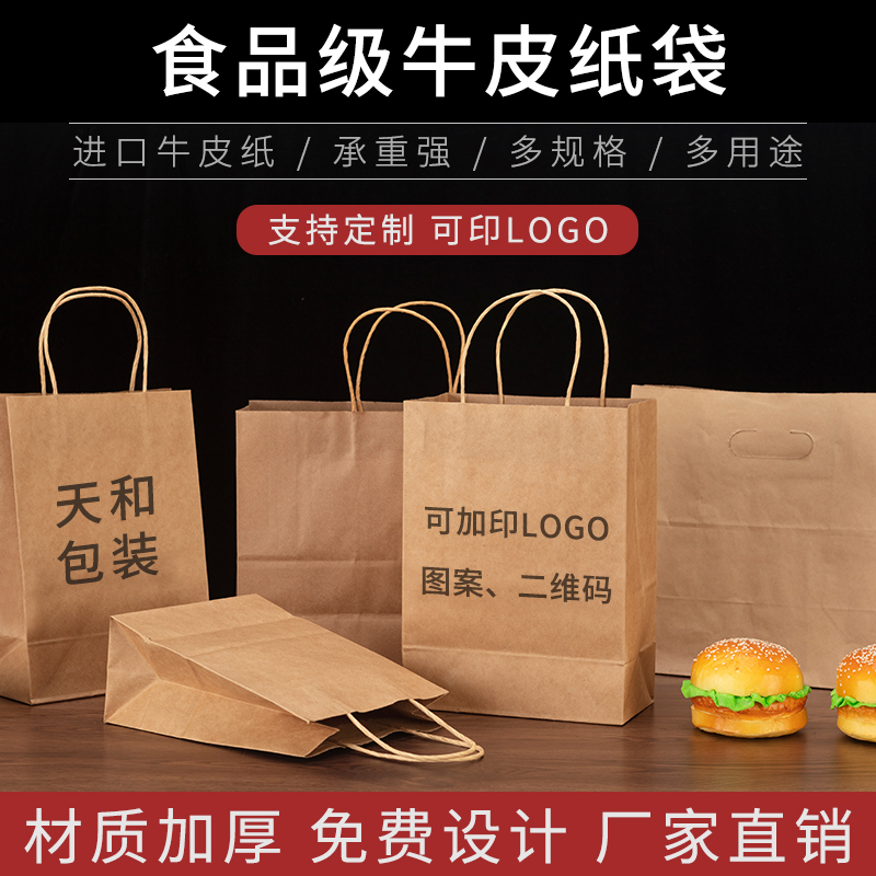 Dessert baking milk tea kraft paper bag tote bag custom printing logo paper bag thickened delivery packaging bag