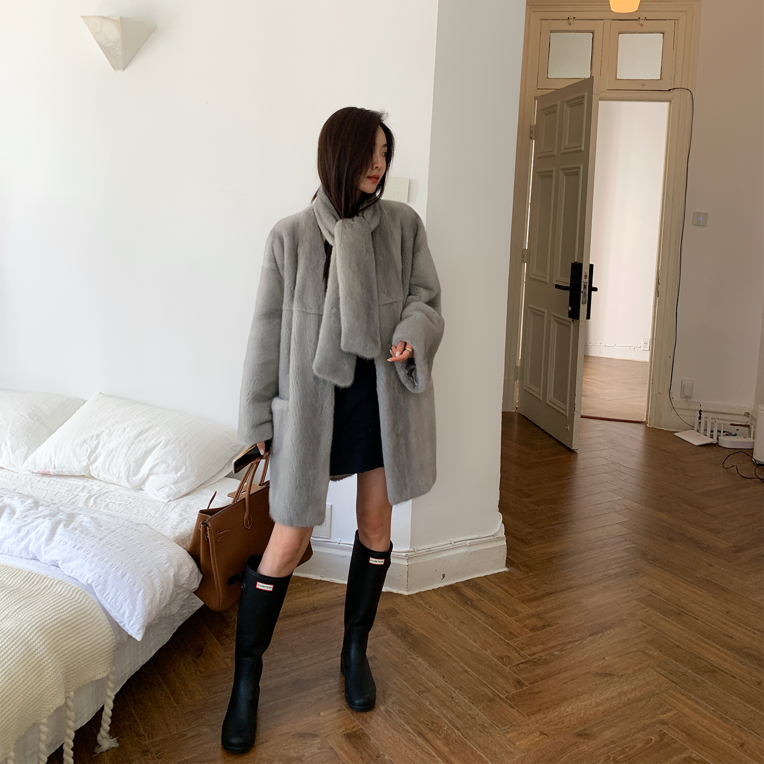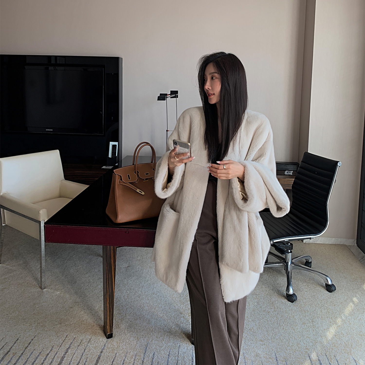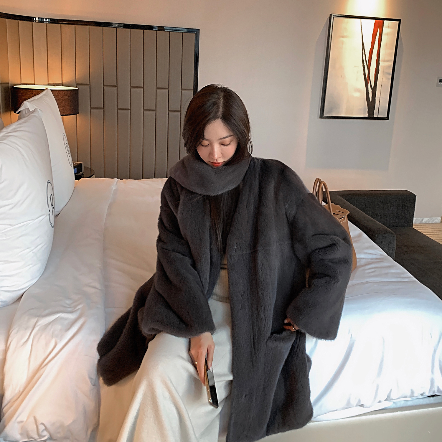 Pay Wise Ngik Mink Imported Mink Fur Coat Woman Whole Mink Fur Coat Grass Woman Medium Long Version Ferret Jacket Young winter