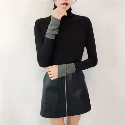Plus velvet high collar base shirt Women autumn and winter Joker slim slim fashion warm top stitching interior long sleeve T-shirt