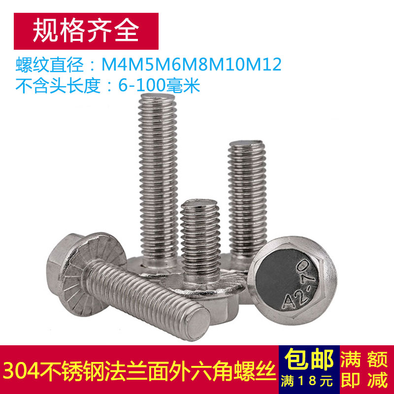 Antisone screw M5M6M10M12c304 stainless steel GB5789 outside hexagonal flange band cushion bolt