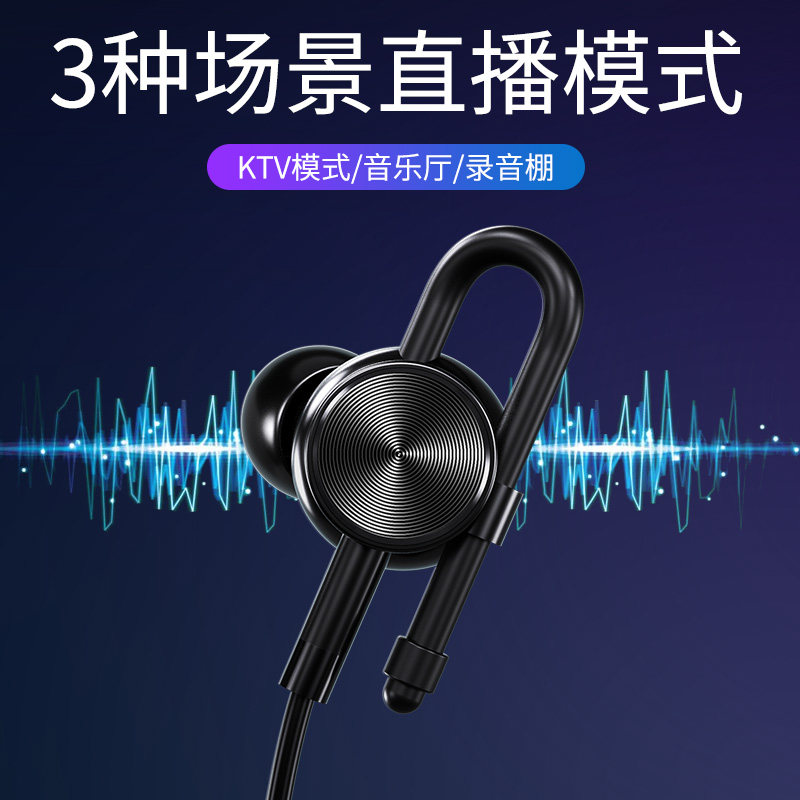 Live monitoring with wheat 1 meter 5 headset anchor dedicated K song singing mobile phone computer universal high-quality sound card in-ear game electric competition eating chicken headset suitable for Apple Huawei lengthening