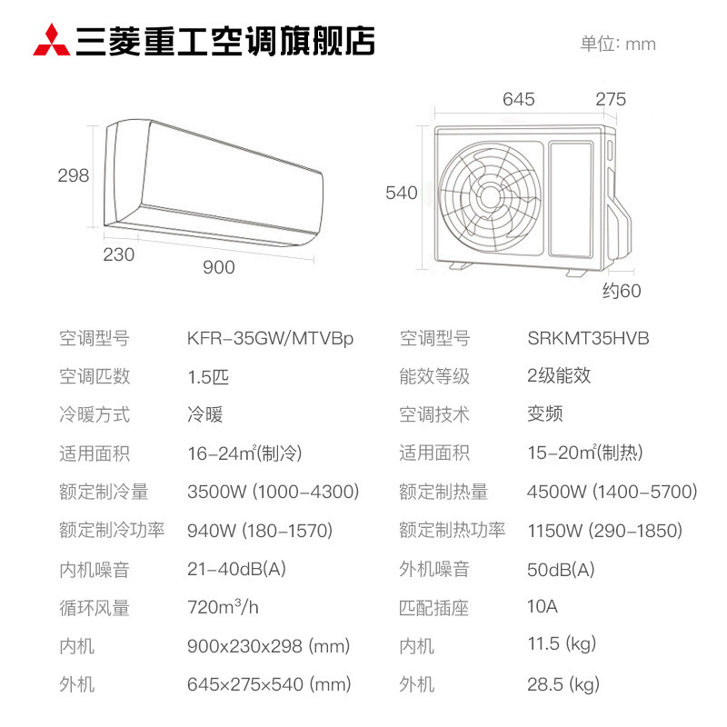 Mitsubishi Mitsubishi KFR-35GW MTVBp large 1 5 Frequency Conversion Bedrooms COLD AND WARM AIR CONDITIONING