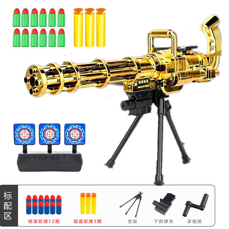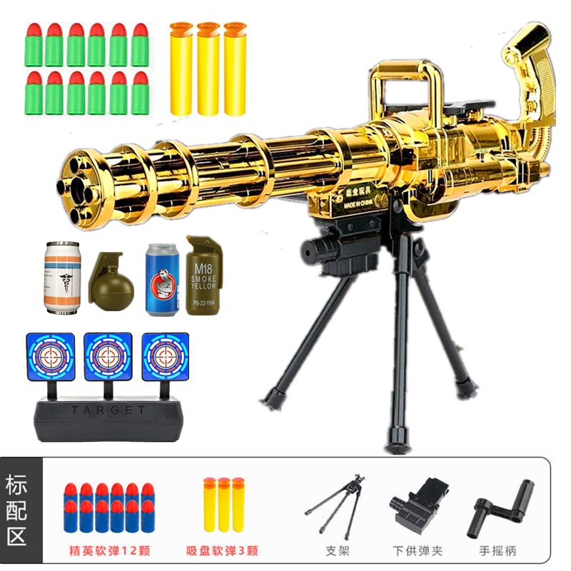 Children eat chicken full set of equipment heavy machine guns Gold Gatlin Electric fired mortars 6-10-year-old boy toy-Taobao