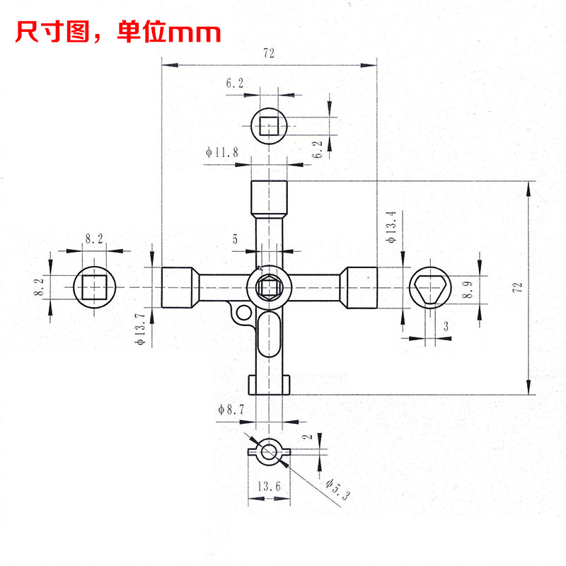 Multifunction key water meter electric control cabinet train door high-speed rail bullet train subway tap Four corner triangle lift accessories