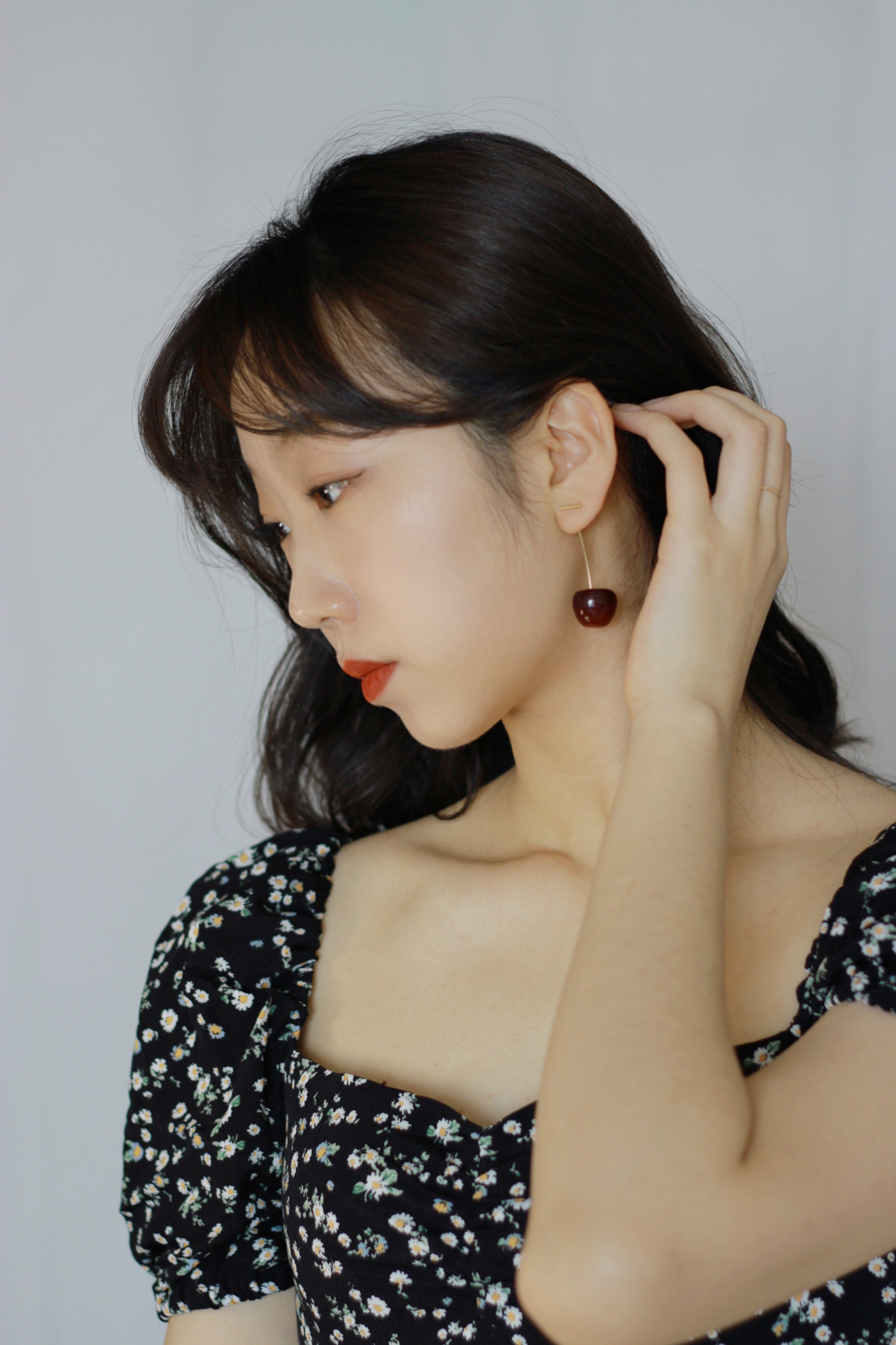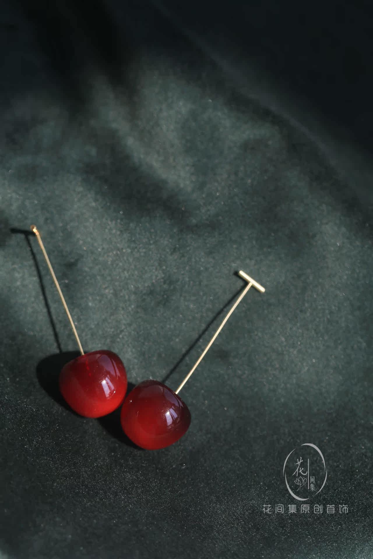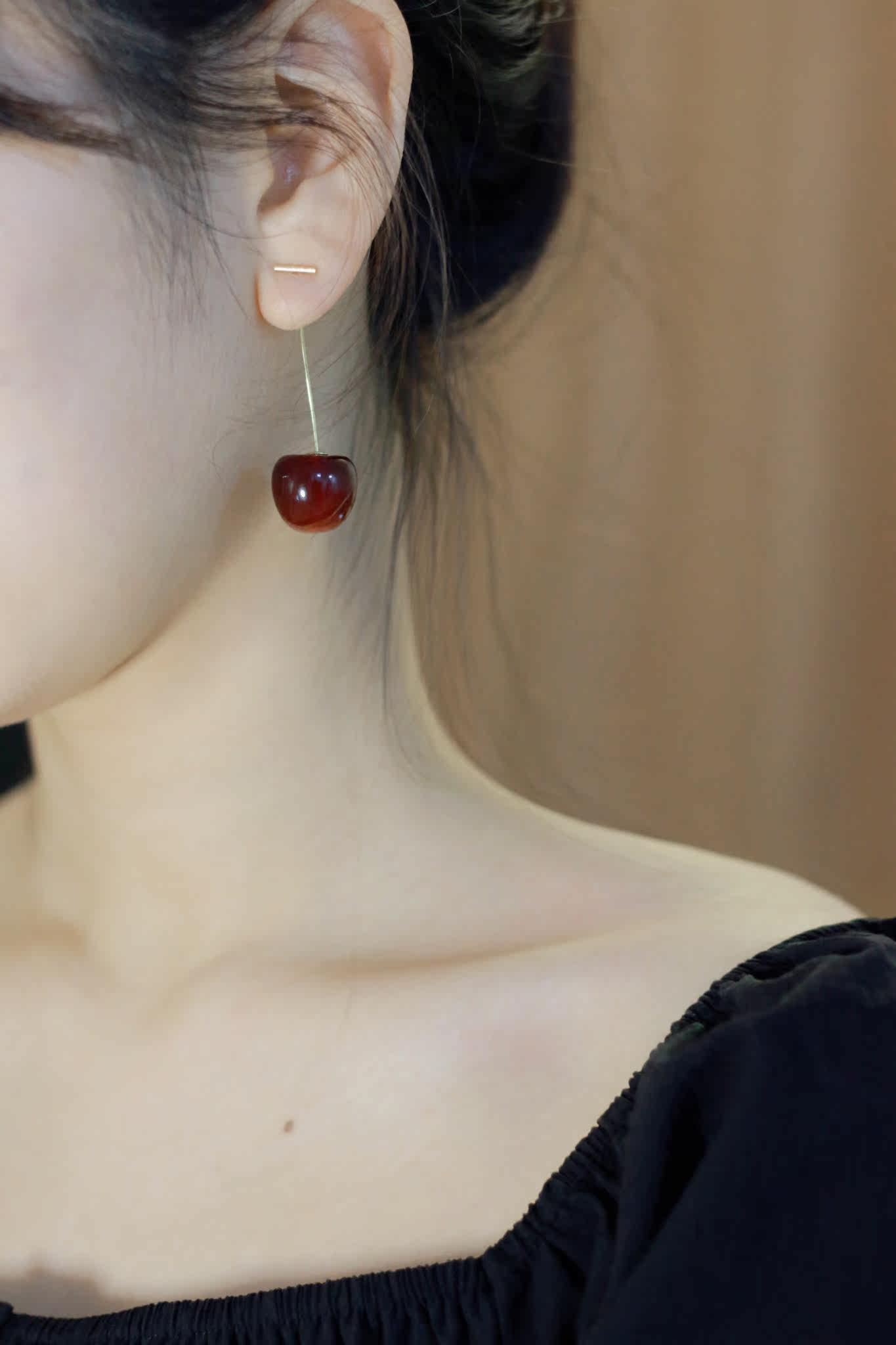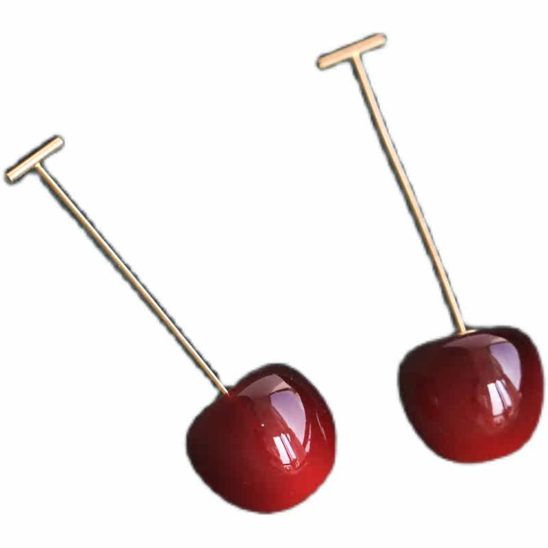 Flower Collection Winter Cherry Sterling Silver Gold Plated Burgundy Cherry Big Cherry Long Ear Pins Earrings Painless Ear Clips