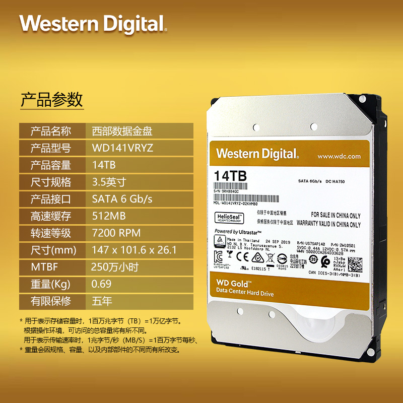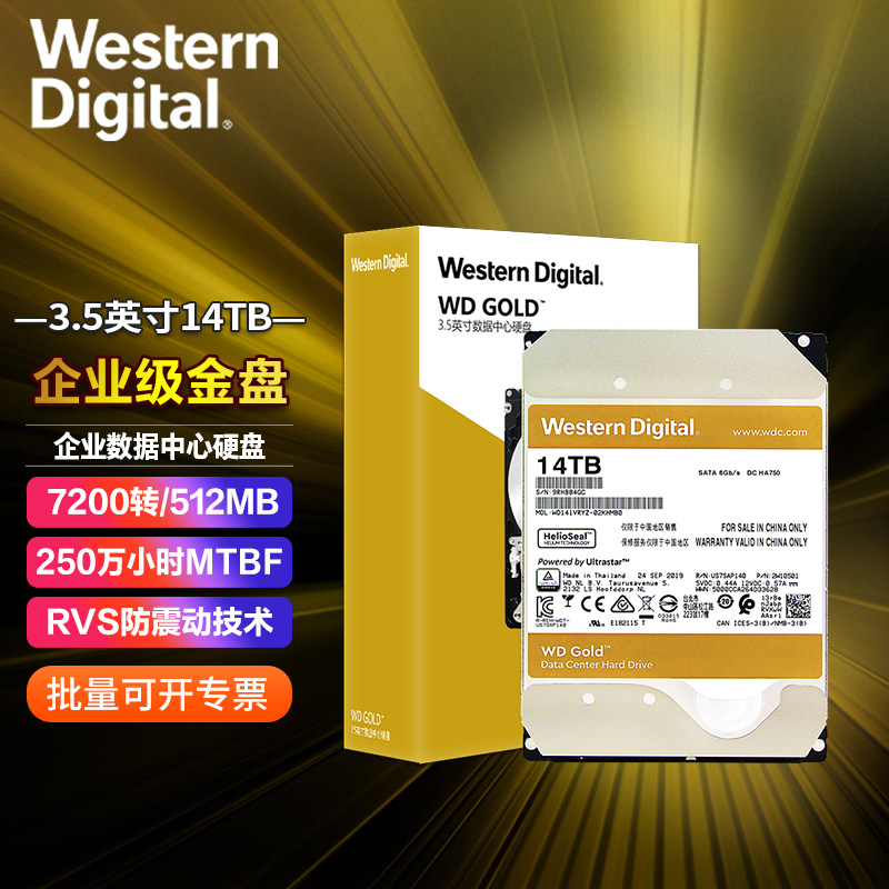 WD Western Digital Gold disc 14TB 7200 7200 512M SATA3 Enterprise hard disc (WD141VRYZ)