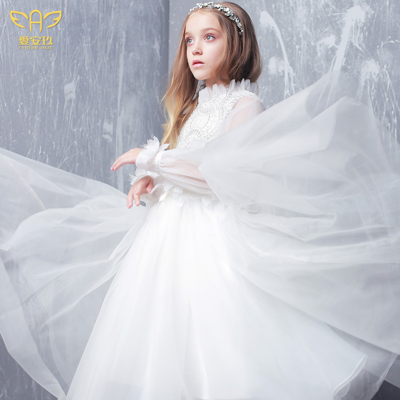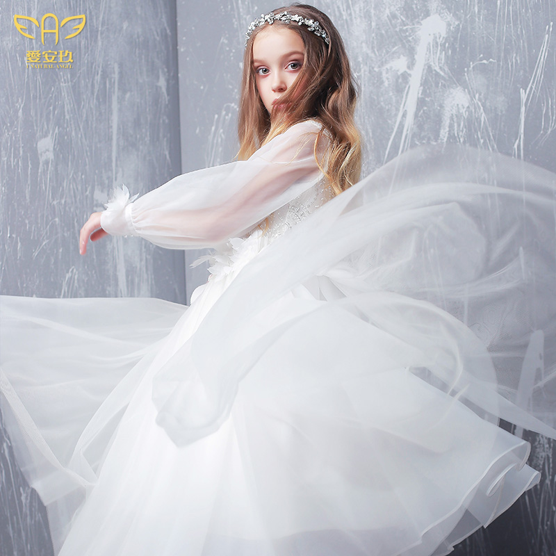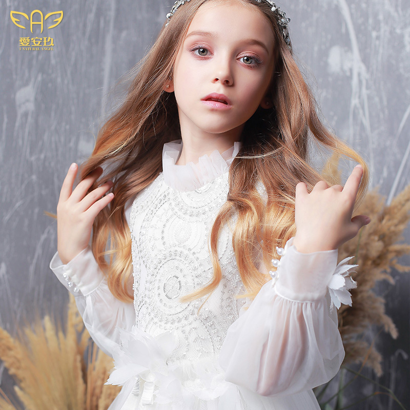 Aianjiu children's dress skirt princess skirt high-end catwalk Western style white girl birthday fluffy yarn piano performance