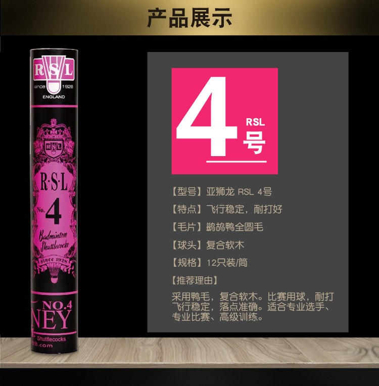 Asian Lion Dragon Badminton No. 4 RSL Badminton Fighting King Stability Professional Competition Training Ball 12 Duck Hair