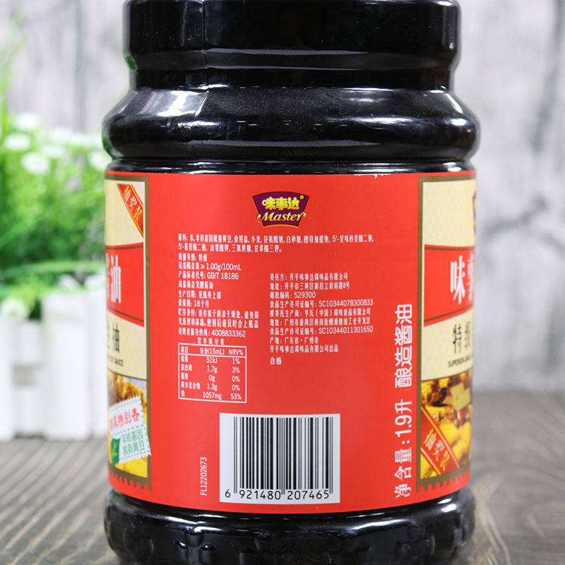 Master's Premium Gold Label Raw Soy Sauce 1 9L Barrel Household Fried Rice Cooked Vegetables Brewed Soy Sauce Cold Vegetable Condiments