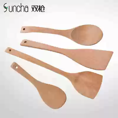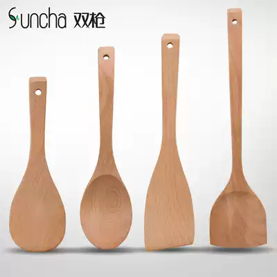 Double gun cooking shovel non-stick pot special shovel non-lacquered wooden shovel set Beech cooking shovel soup spoon rice spoon spatula