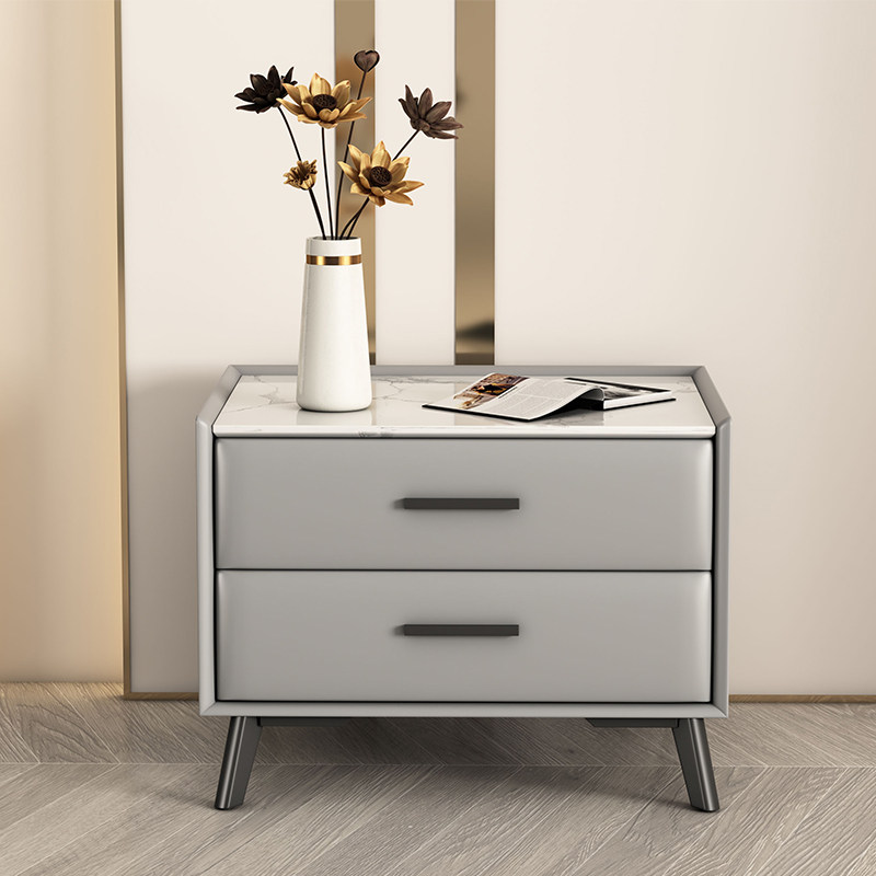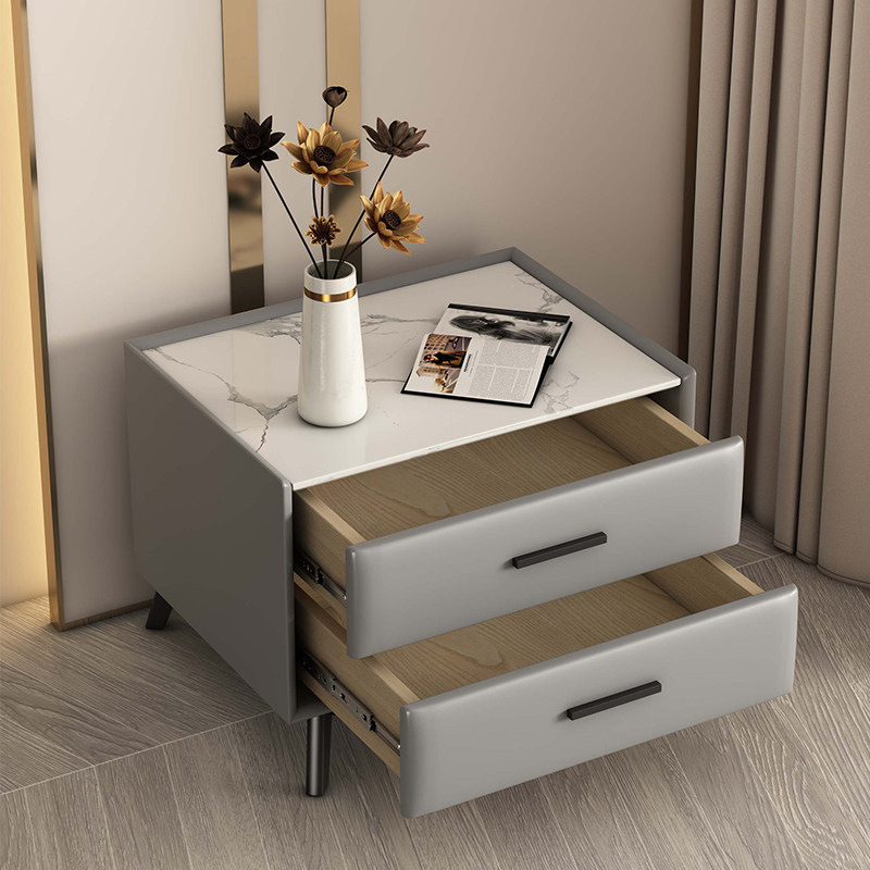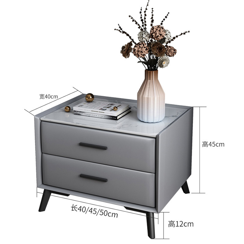 All solid wood bedside table simple modern bedroom Nordic mini minimalist net red style light luxury leather rock slab bedside cabinet