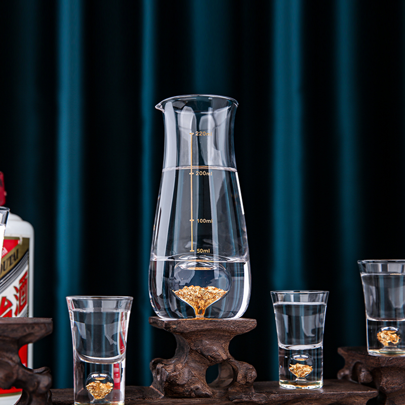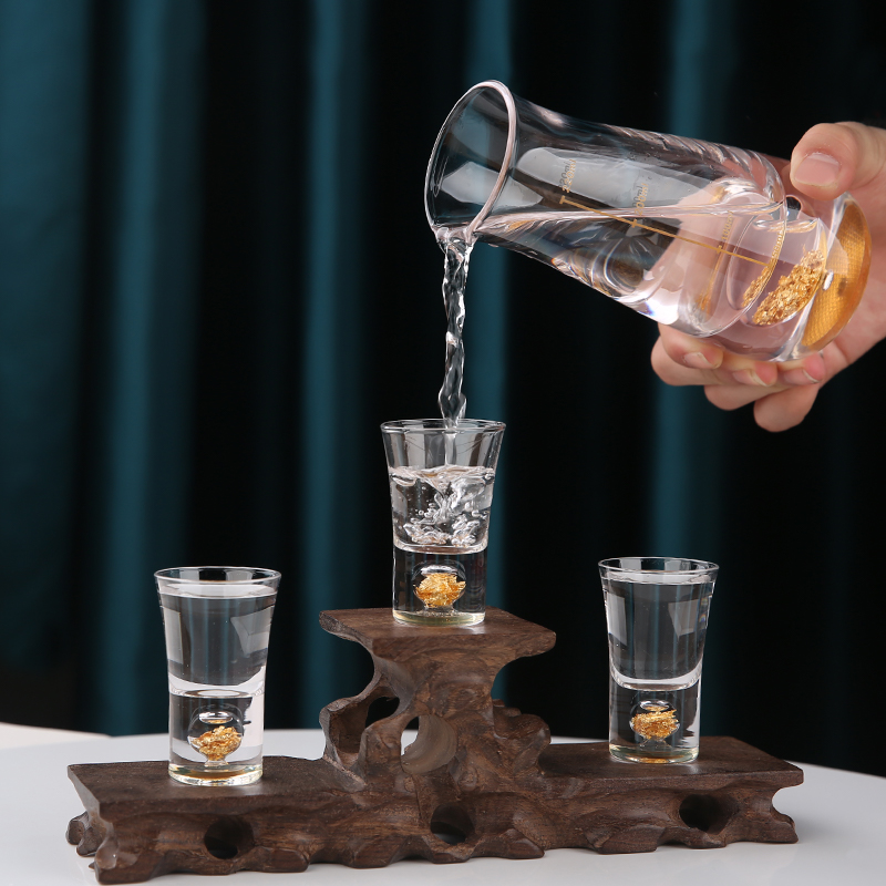Crystal glass wine dispenser set household liquor glass spirit cup creative handmade gold foil gift box business gift