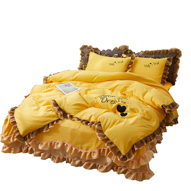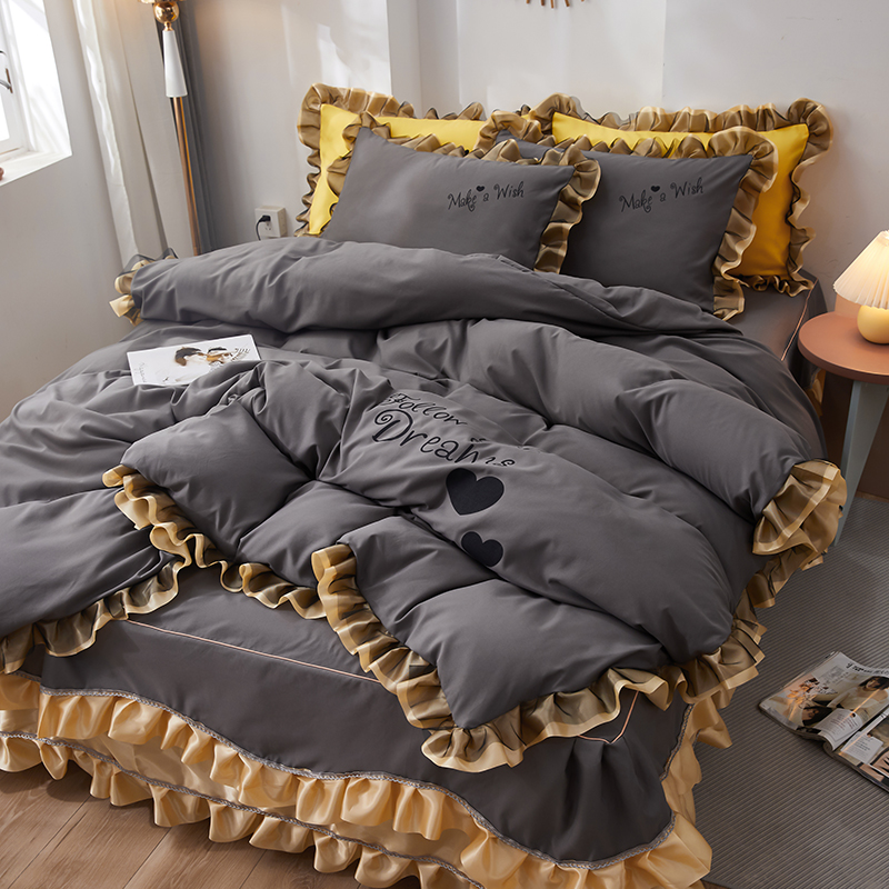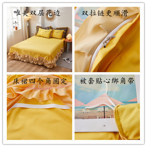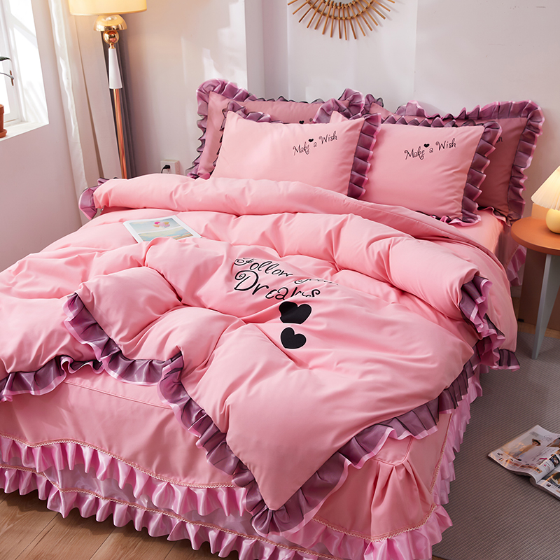 Net red four-piece set Double lace cotton cotton bed skirt princess style quilt cover simple bedspread bedding 4