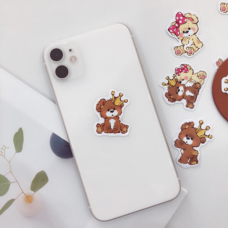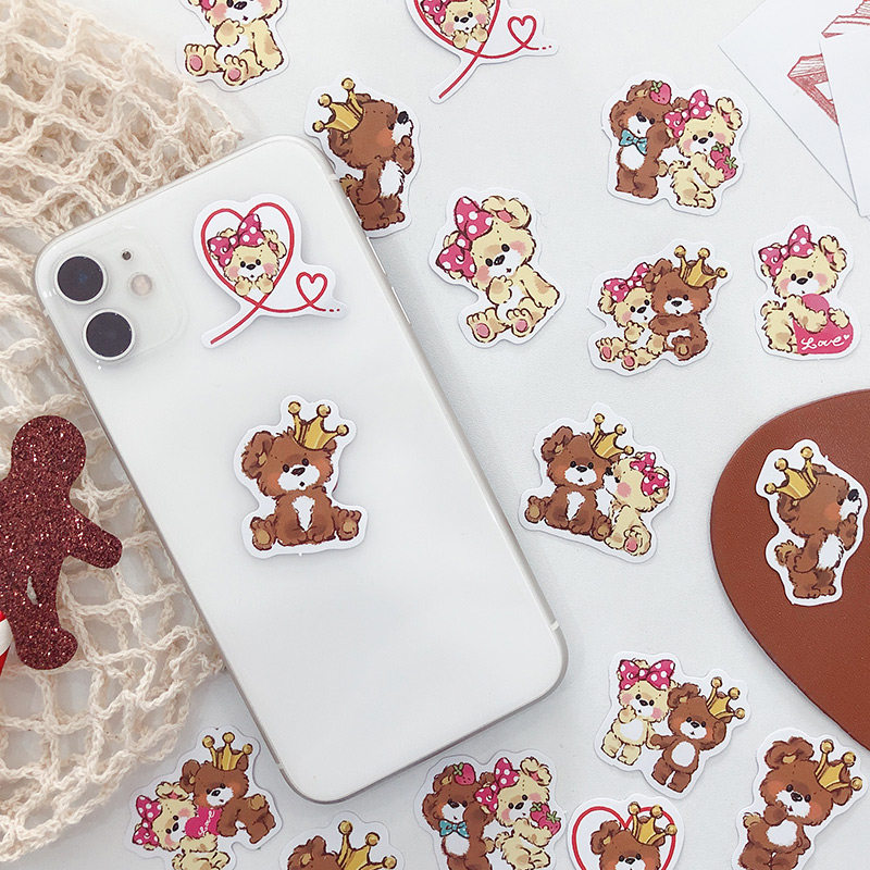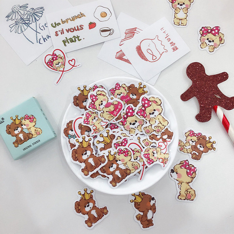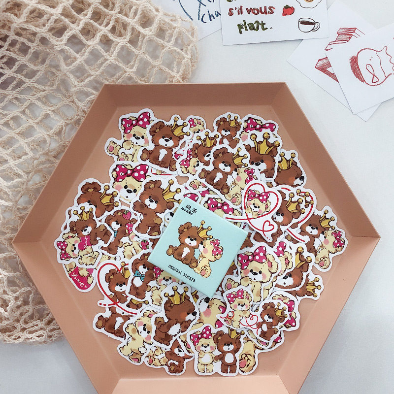 Creative Cartoon Cute Children Stickers Suit And Paper Notebook Hand Ledger Material Crown Bear 44 pieces Girl Hearts Cell Phone Computer Diary album Decorative Diy Small Sticker Decorative Sticker