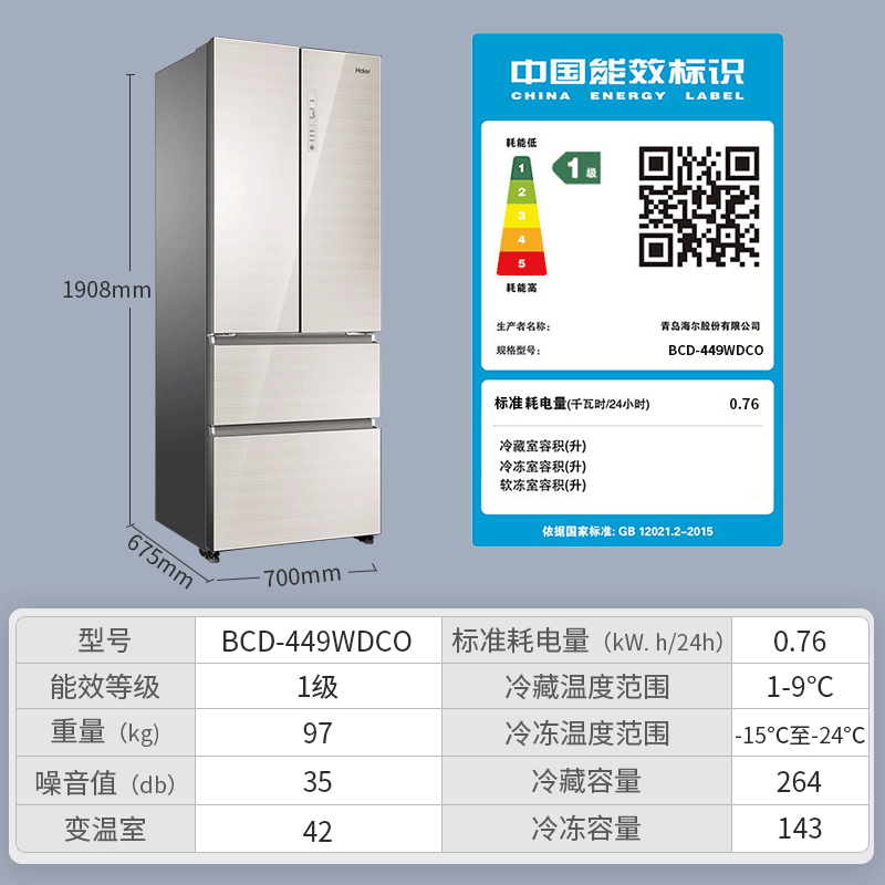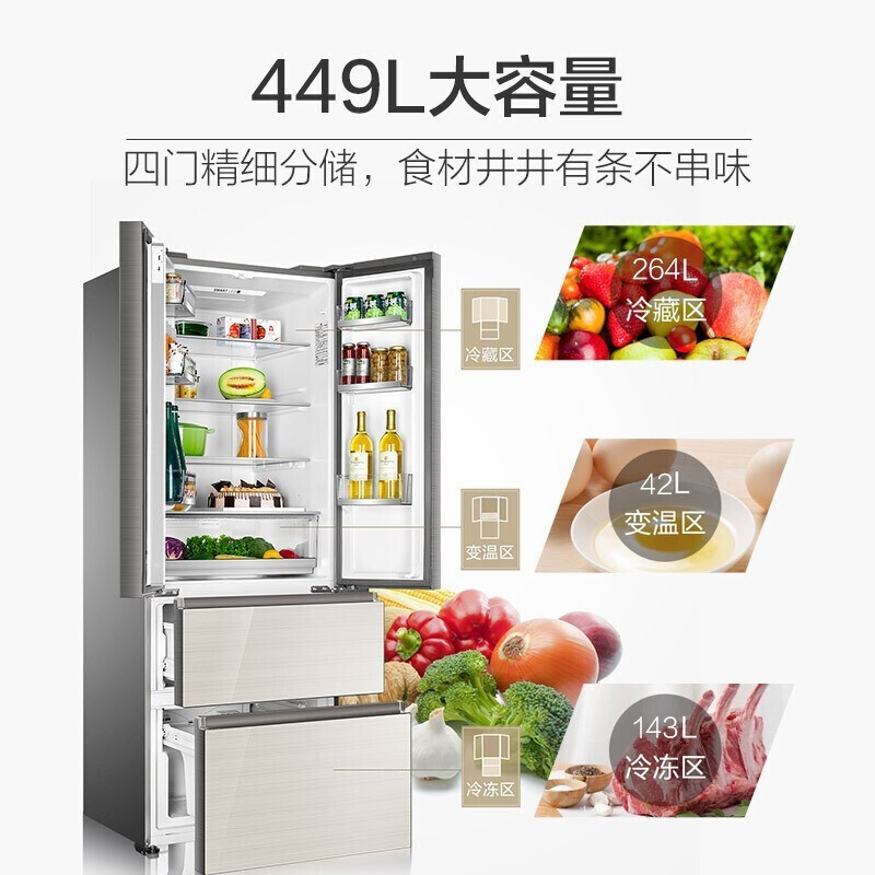 Haier refrigerator French multi-door four-door air-cooled frost-free class inverter household energy-saving official 449WDCO 426L