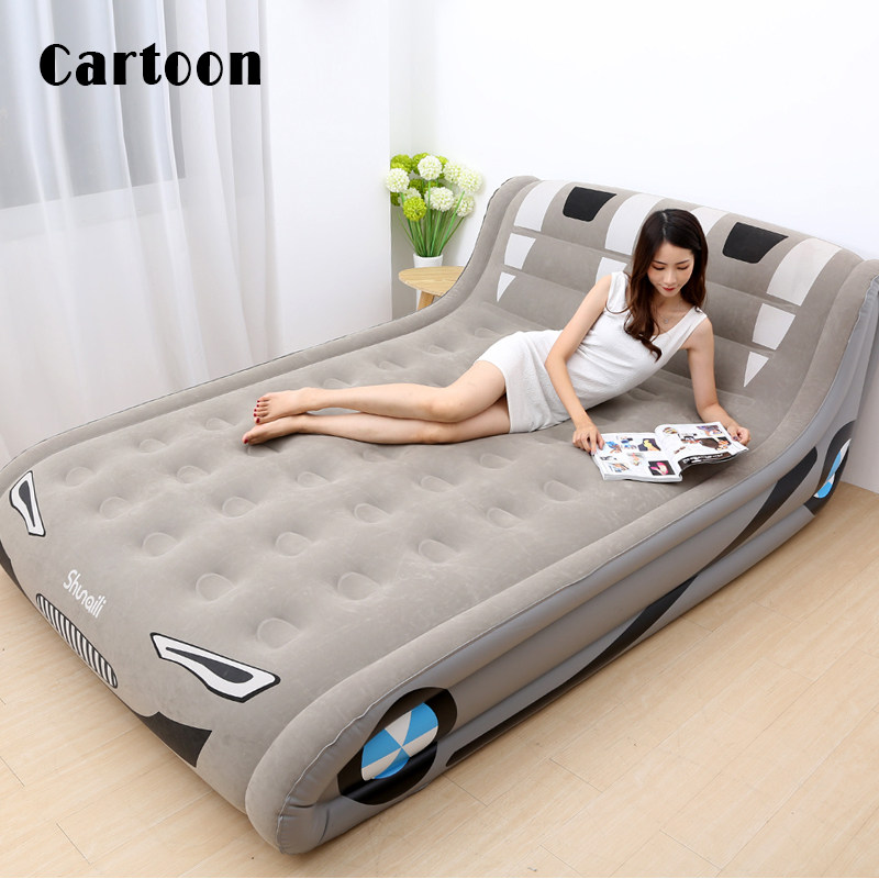 Simple cartoon inflatable mattress home double inflatable bed cute single thickened high lazy air mattress
