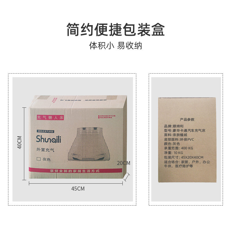 Length 2 meters, width 1.3 meters, height 0.35 meters Gray single inflatable bed