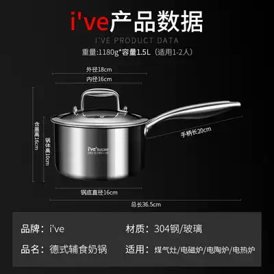Germany ive 304 stainless steel small milk pot thickened non-coated baby food pot non-stick pot non-stick milk baby pot