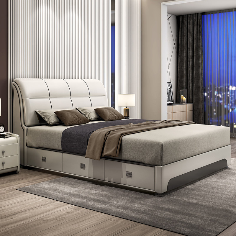 Modern leather bed 18 meters soft bedside tatami double bed small apartment simple master bedroom wedding bed European furniture