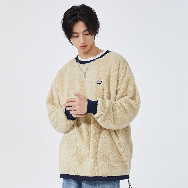 PSO Brand Contrast round neck fleece sweater men loose 2020 new winter plush top Couple