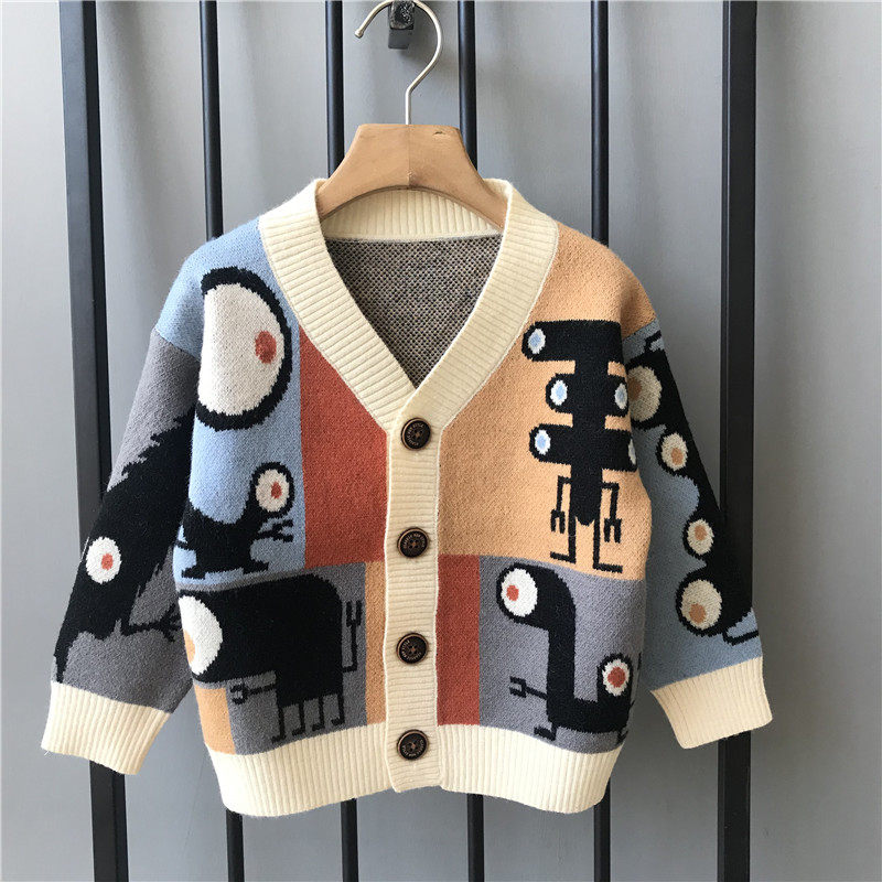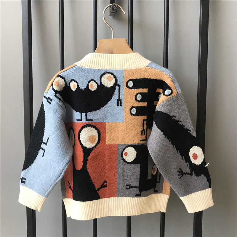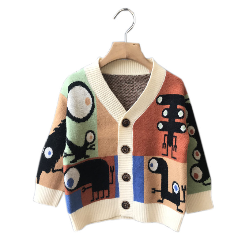 Girl Clothes Autumn Winter New Cartoon V Collar Sweater Sweater Han Version Foreign Pie Children Jacket Boy Baby Pin Weaters