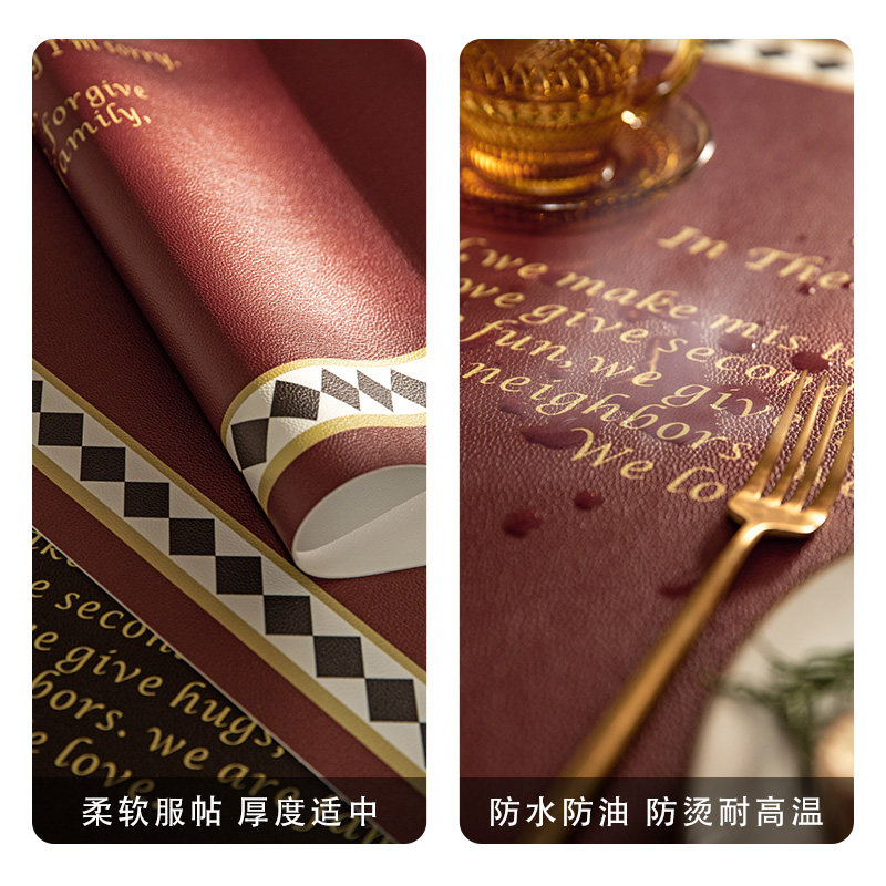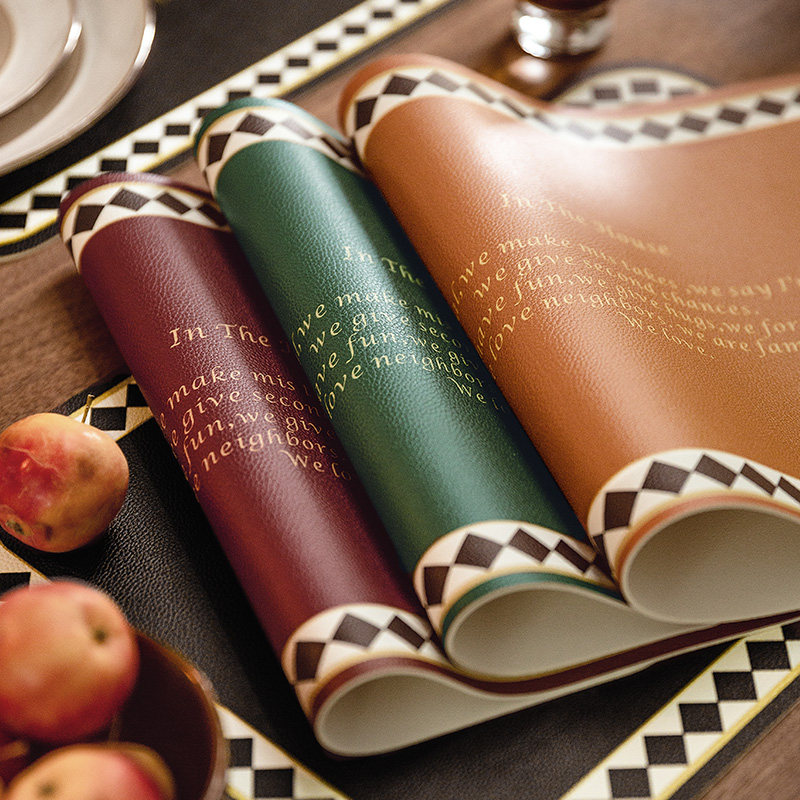 (2 Sheets) American Retro Leather Western Dining Mat Meal Cushion Home Red Holiday Home Insulation Mat Table Cushion Bowl Mat