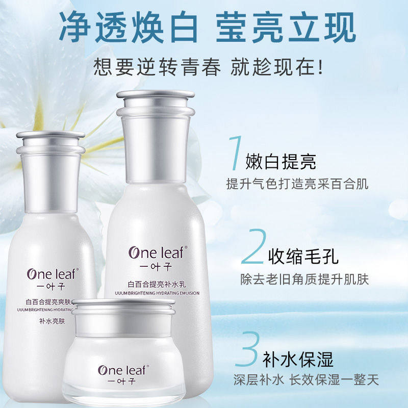 (pdd one leaf water milk suit moisturizing moisturizing ti bright complexe shrink pores wash face milk male and female students fall back