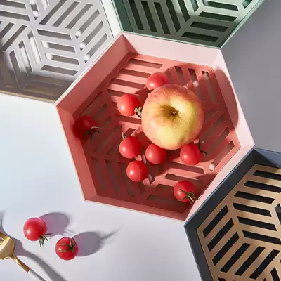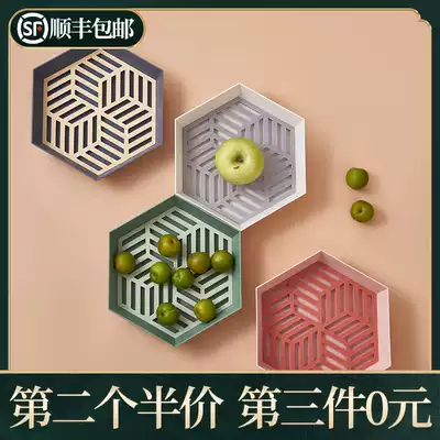 Double-layer fruit plate geometric living room creative household drain basket Simple candy plate hexagonal fruit plate snack plate