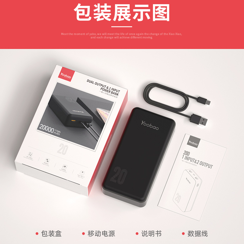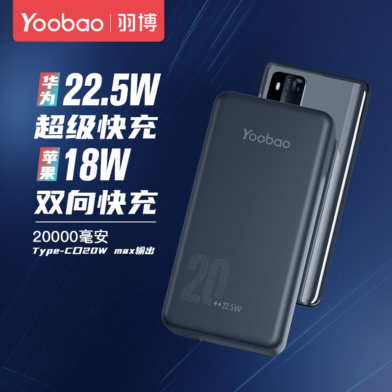 Yubo mobile charging 20000 mAh power mobile phone ultra-thin portable mini large-capacity fast charging flash charging dedicated