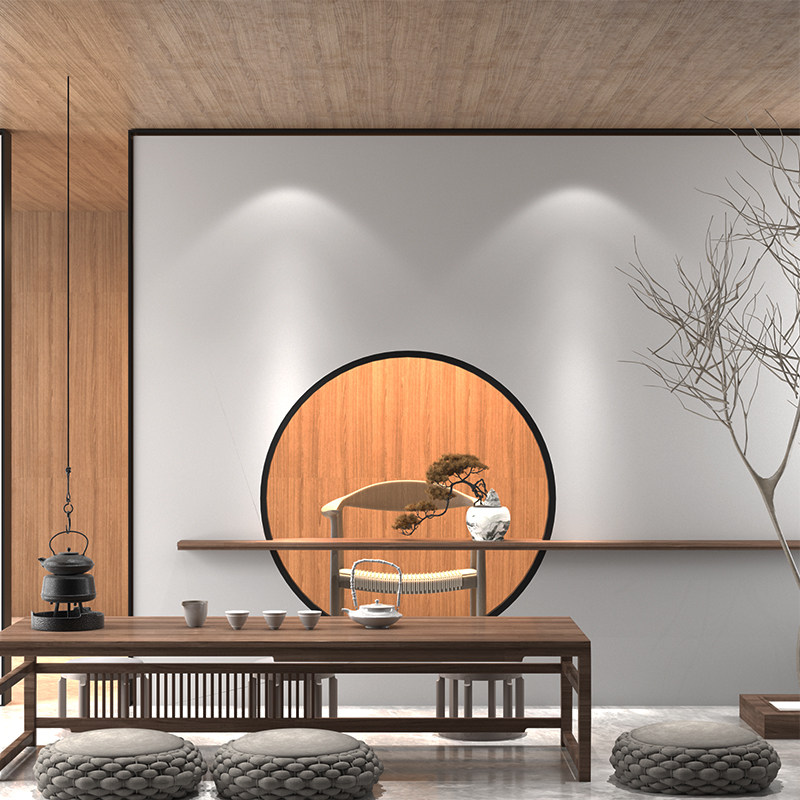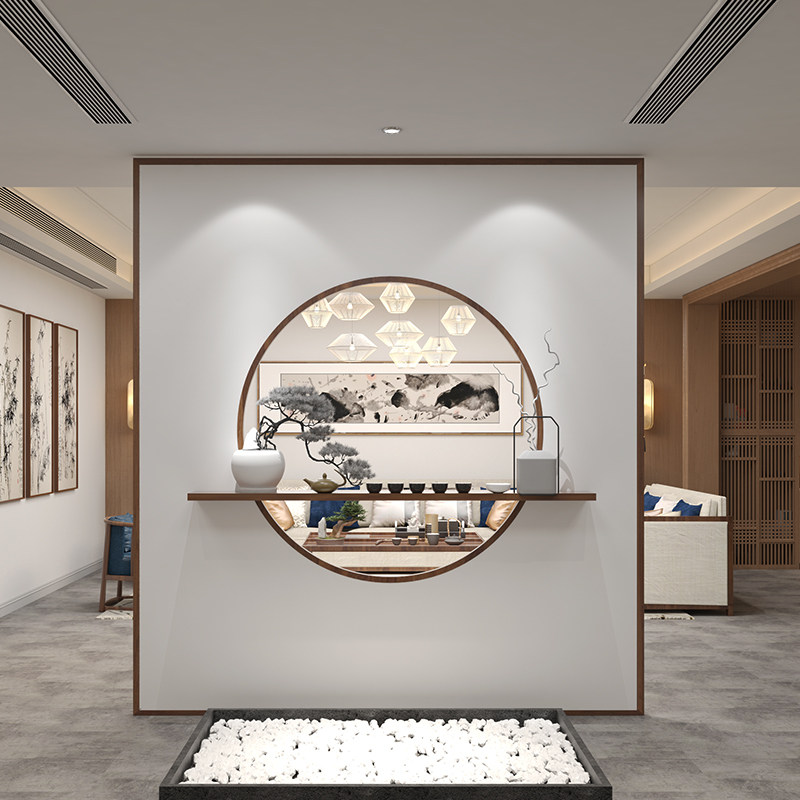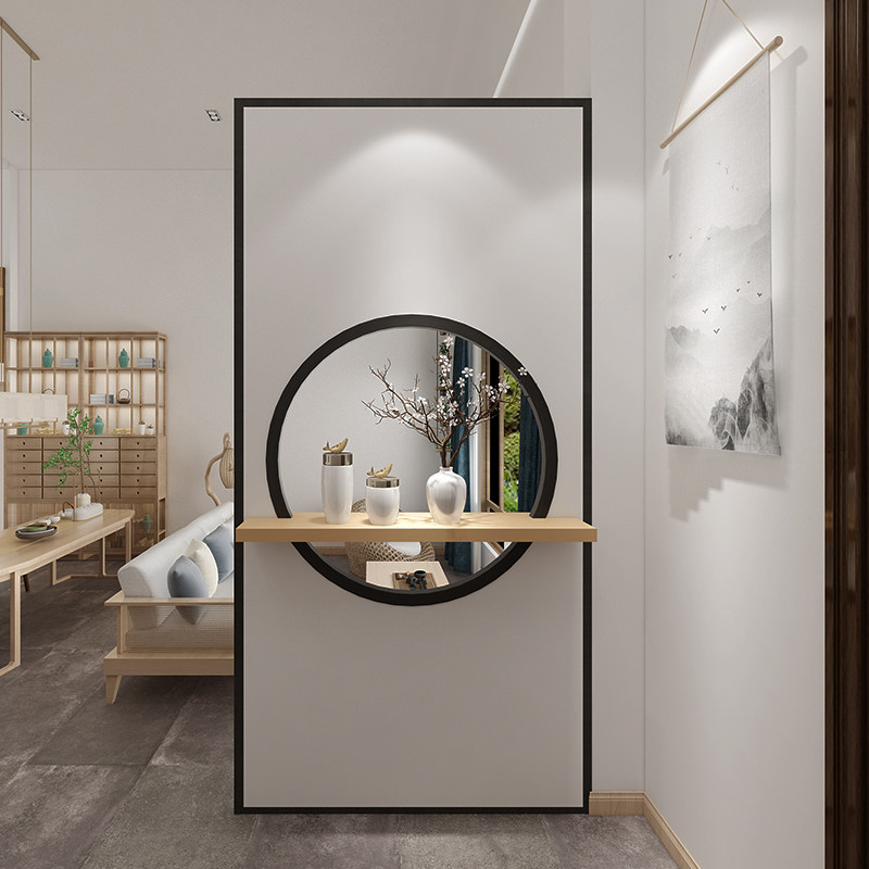 Modern new Chinese style solid wood fabric porch living room partition wall TV background wall round home partition screen