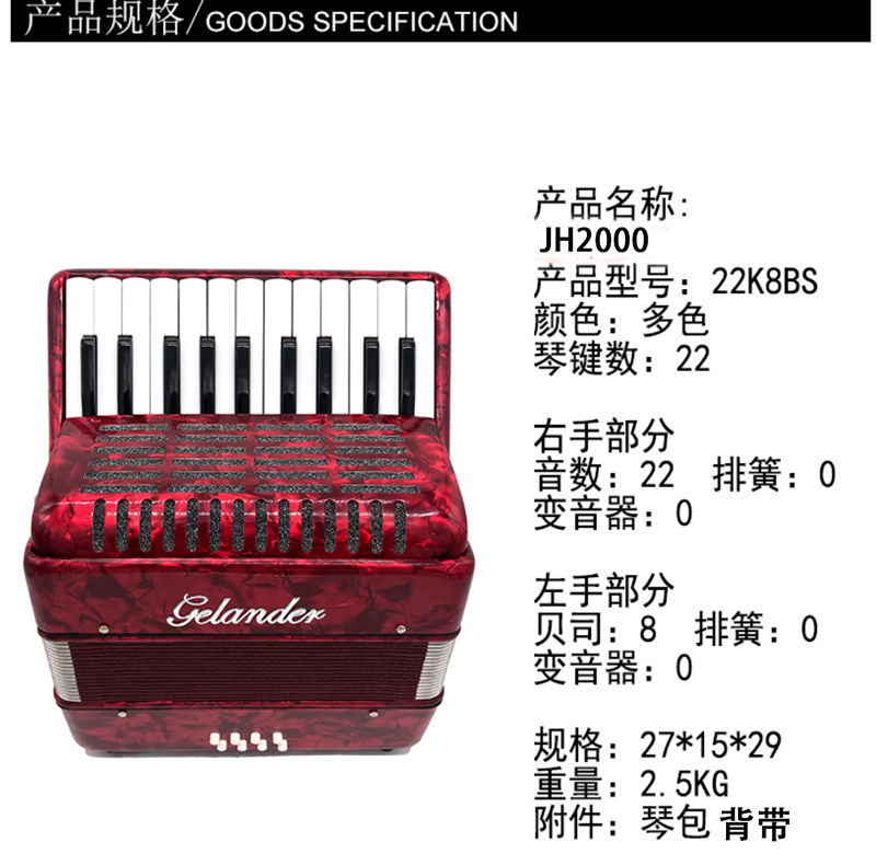 Sino-American joint venture Gold Cup Grande 8 bass 22 Key accordion children Seniors beginnings professional instruments