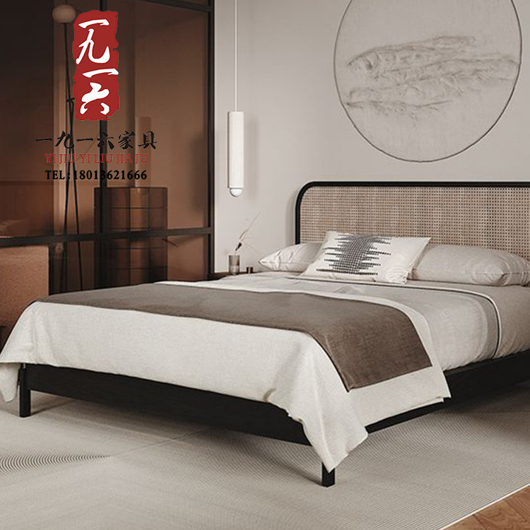 New Chinese Limdo Double Bed Modern Simple Homestay Residence Zen Bedroom Retro-Back King Bed