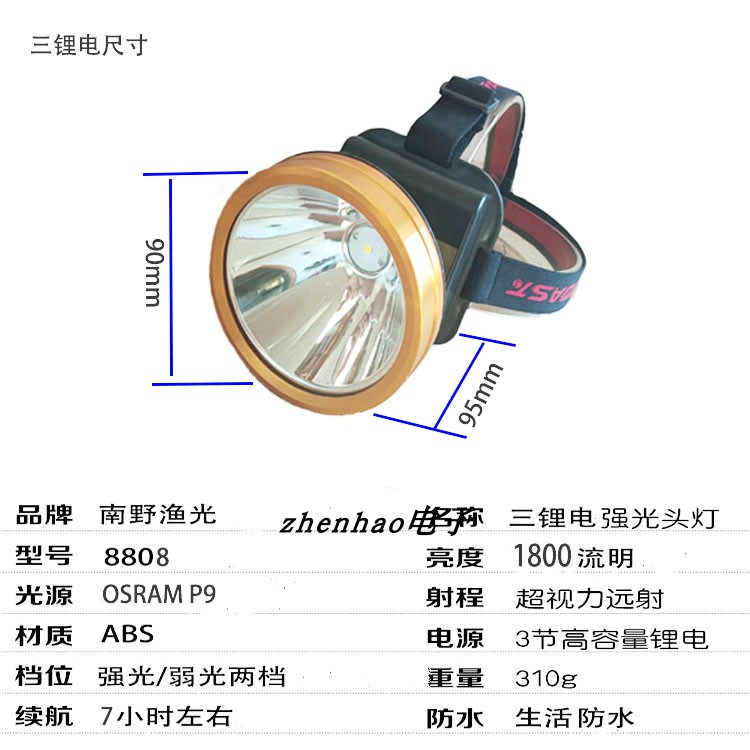 South Wild Fishing Light 8808 Intense Light Afar LED headwear outdoor lighting 3 Lithium electric bright charging headlights New products