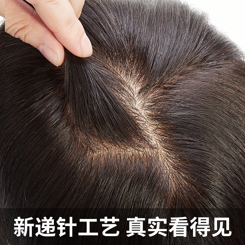 Wig Sheet Head Top Patch Hair woman Straight hair large area covered with white hair Tonic Hair Block Invisible and Genuine Hair Loss