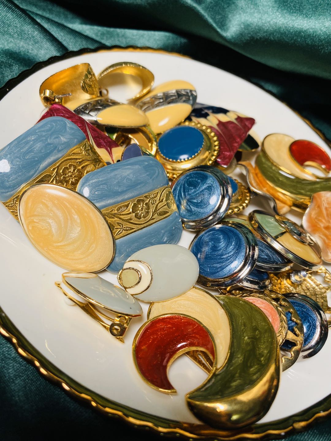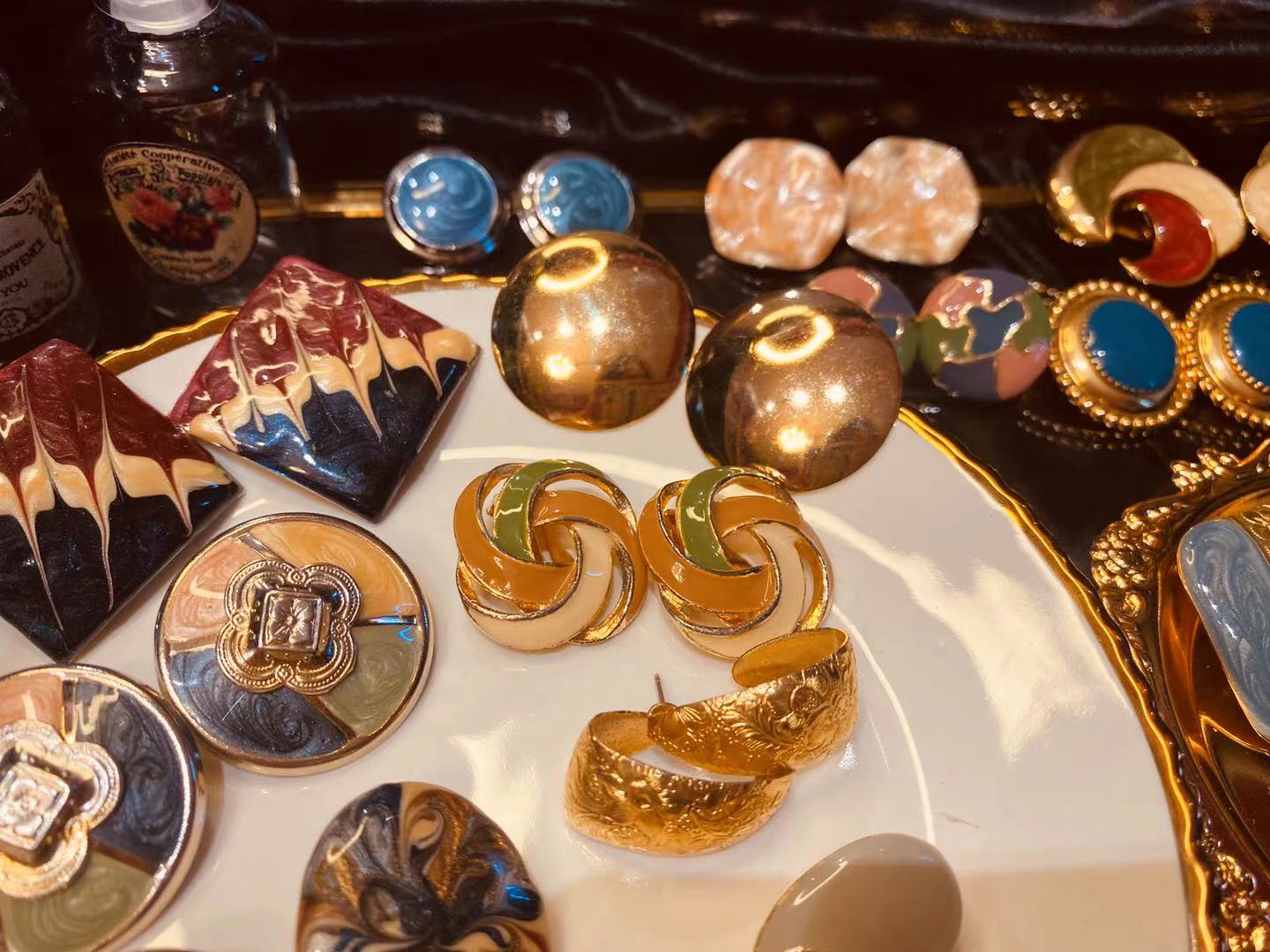 (Millionaire Bean) Vintage Earrings American Enamel Vintage Antique Antique Antique Ear Clip European (2)